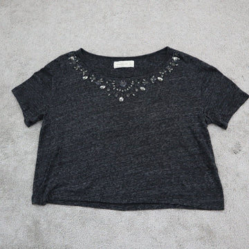 Abercrombie & Fitch Womens Crop Tee Beaded Embellished Short Sleeve Gray Black S