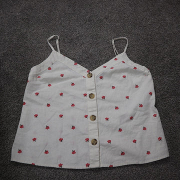 Abercrombie & Fitch Linen Tank Cropped Top Floral Front Button White Size S