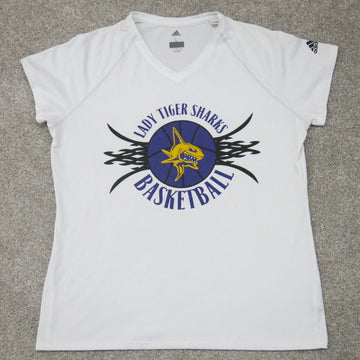 Adidas Climalite Womens Graphic T Shirts Top Short Sleeve V-Neck White SZ Large