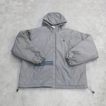Adidas Jacket Mens 2XL Gray Windbreaker Hooded Logo Lightweight Outdoor Parka