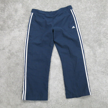 Adidas Men Activewear Track Pants Elastic Waist 3 White Striped Logo Blue SZ L