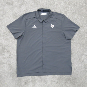 Adidas Mens Button Up Shirt Short Sleeve High Low Hem Dark Gray Size US XL