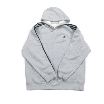 Adidas Mens Hooded Sweatshirt Long Sleeves 3 Striped Pockets Gray Size Large