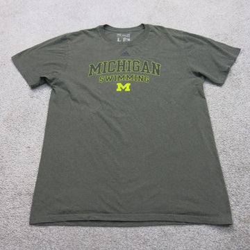 Adidas Mens Michigan Swimming The Go To Tee Shirt Short Sleeve Crew Neck Green L