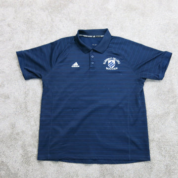 Adidas Mens Polo Shirt Striped ELMHURST COLLEGE Soccer Logo Blue/Black Size L