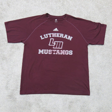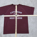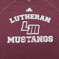 Adidas Mens T Shirt Lutheran Mustangs Graphic Tee Raglan Sleeves Maroon Size S