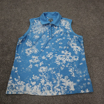 Adidas Mens Polo Tank Top Sleeveless Collar Neck Floral Print Blue White Size L