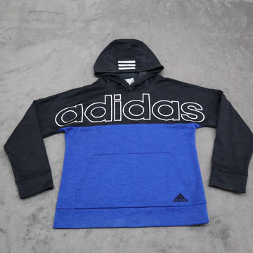 Adidas Women Activewear Hoodie Sweatshirt Colorblock Pocket Blue Black SZ 10/12