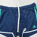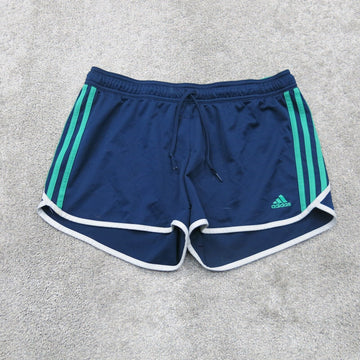 Adidas Womens Athletic Short Drawstring Waist Running Green 3 Striped Blue SZ M