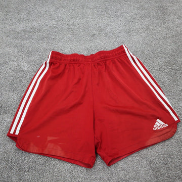 Adidas Womens Shorts Striped Gym Running Athletics Elastic Red Size Medium