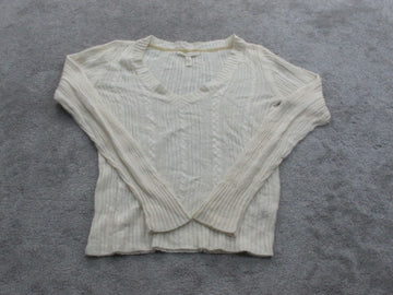 Aeropostale Women Pullover Sweater Knitted Long Sleeves V Neck Cream Size Small