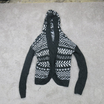 Aeropostale Womens Cardigan Sweater Hooded Long Sleeve Black White Size X Large