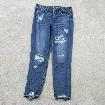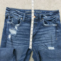 American Eagle Mens Jeans Slim Straight Leg Mid Rise Distressed Solid Blue SZ 6R