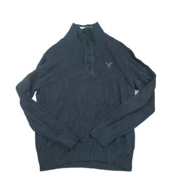American Eagle Mens Pullover Sweater Front Button Long Sleeves Black Size Large
