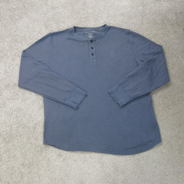 American Eagle Shirt Mens Large Gray Henley Neck Logo Lightweight Super Soft