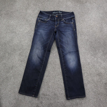 American Eagle Women Artist Slim Straight Jeans Denim Low Rise Blue Size 00