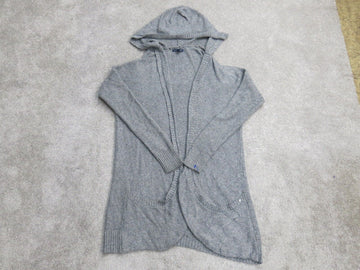 American Eagle Women Open Front Hooded Sweater Long Sleeve Pockets Gray SZ Large