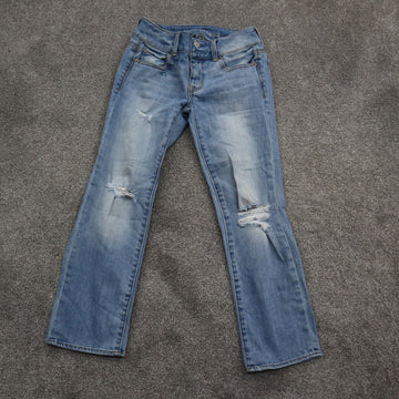 American Eagle Women Straight Leg Jeans Low Rise Distressed Pockets Blue Size 00