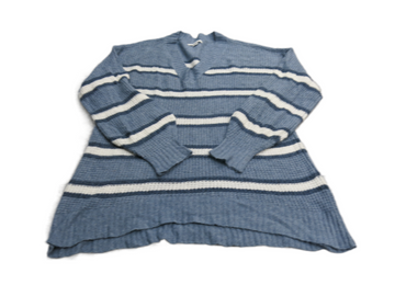 American Eagle Women Striped Pullover Sweater V Neck Long Sleeve Blue White XS