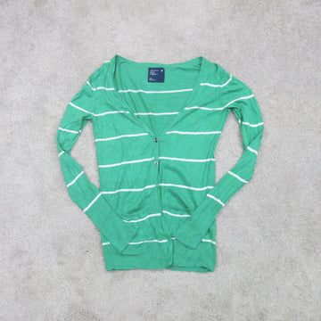 American Eagle Womens Cardigan Sweater Front Button Green White Size Medium