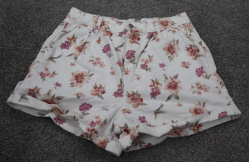 American Eagle Womens Casual Floral Denim Boyfriend Shorts High Rise Cream SZ 10