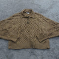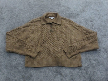 American Eagle Womens Crop Polo Sweater Knitted Long Sleeves Light Brown Size S