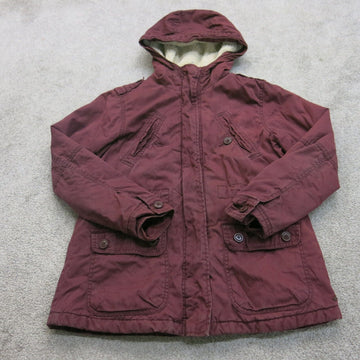 American Eagle Womens Fleece Lined Winter Hooded Jackets Red Pocket Size Medium