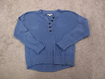 American Eagle Womens Henley Knitted Sweater Long Sleeves Slate Blue Size S/P