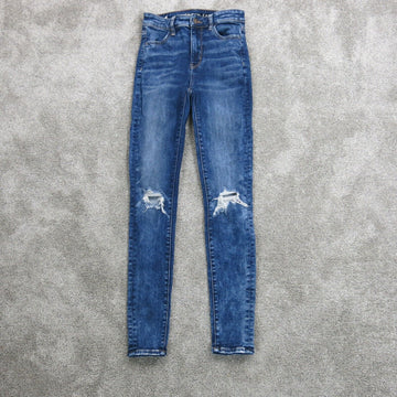 American Eagle Womens Jeans Super High Rise Jegging Distressed Blue Size 0 Reg