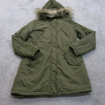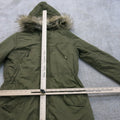 American Eagle Womens Parka Faux Fur Trim Hood Puffer Winter Coat Green SZ Small