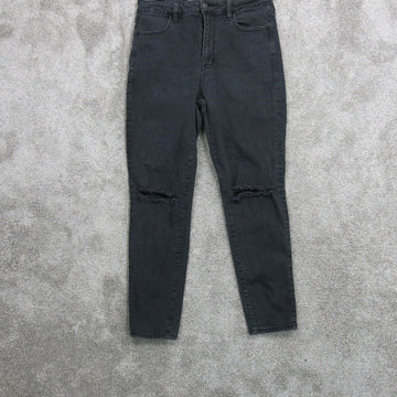 American Eagle Womens Skinny Jeans Distressed Super Stretch Black SZ UK 16 Short