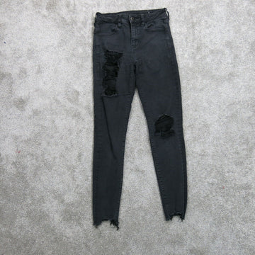 American Eagle Womens Skinny Jeans Stretch Mid Rise Distressed Black Size 4