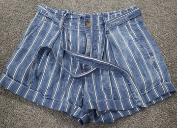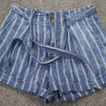 American Eagle Womens Striped Casual Denim Shorts Mid Rise Blue White Size 0