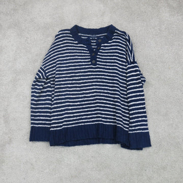 American Eagle Womens Striped Pullover Sweater Hanley Neck Blue White Size XL