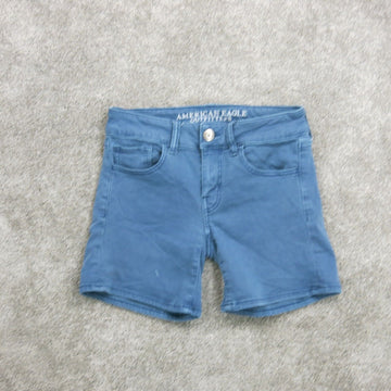 American Eagle Womens Super Stretch Chino Denim Jeans Shorts Low Rise Blue SZ 0