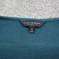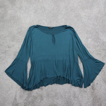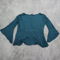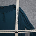 Ann Taylor Womens Bell Sleeve Blouse Top Round Neck Front Keyhole Teal Blue Sz M