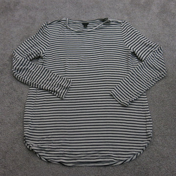 Ann Taylor Womens Striped Sweatshirt Crew Neck Long Sleeve White Black Size M
