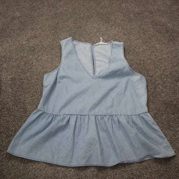 BCB Generation Womens Blouse Top Peplum Deep V Neck Sleeveless Blue Size S