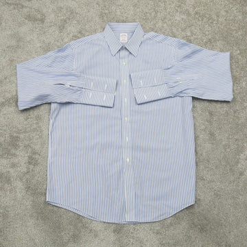 Brooks Brother Men Stripe Button Up Shirt All Supima Cotton Sky Blue Sz XL 17-36