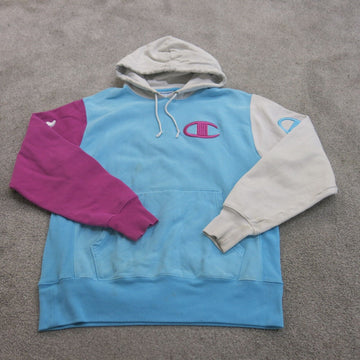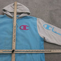 Champion Hoodie Womens L Blue White Long Sleeve Outdoor Sweatshirt Swoosh Logo