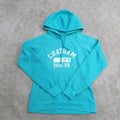 Champion Hoodie Womens Small Aqua Green Pullover Sweatshirt Spell Out Outdoors