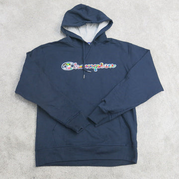 Champions Hoodie Mens Medium Blue Long Sleeve Spell Out Logo Outdoors Sweatshirt