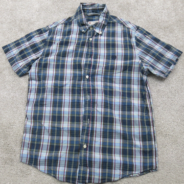 Chaps Mens Plaid Button Up Logo Shirt Short Sleeves Multicolor Small Classic Fit