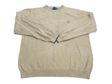 Chaps Mens Sweater Long Sleeve Pullover Crew Neck 100% Cotton Beige Size Large
