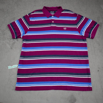 Chaps Striped Polo Shirt Men's Size XL Maroon Blue Short Sleeves Collared Neck