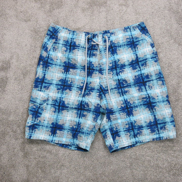 Columbia Mens Cargo Shorts Omni Shade Drawstring Waist Pocket Check Blue Size 36