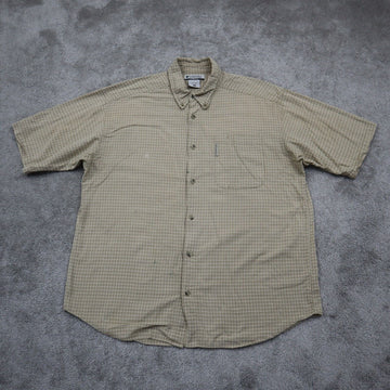 Columbia Mens Button Up Check Shirt Short Sleeves Collared Neck Beige Size XL