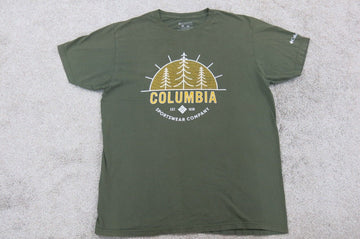 Columbia Shirt Mens Large Green Crew Neck Tee 100% Cotton Short Sleeve Casual
