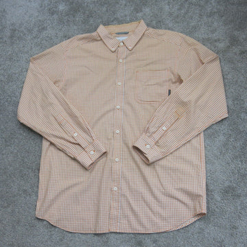 Columbia Sportswear Men Check Button Down Shirt Long Sleeves OrangeWhite Size L
