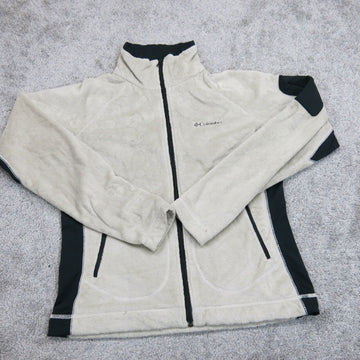 Columbia Sportswear Womens Full Zip Fleece Jacket Long Sleeves Beige Black SZ M
